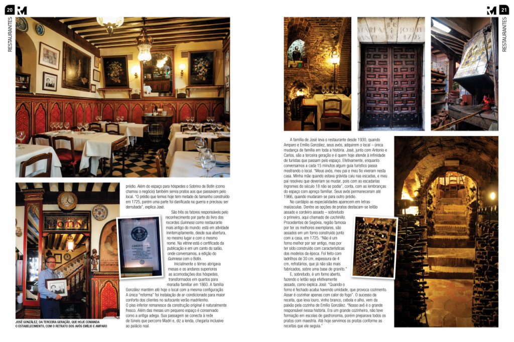 São três os fatores responsáveis pelo reconhecimento por parte do livro dos recordes Guinness como restaurante mais antigo do mundo: está em atividade ininterruptamente desde sua abertura, no mesmo lugar e com o mesmo nome. Na vitrine está o certificado da publicação, e em um canto do salão onde conversamos a edição do Guinness com o Botín.